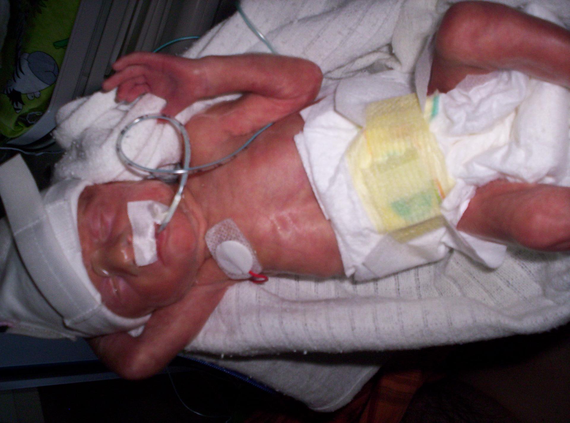 Cette matinée du 2 août avait mal commencé, je me suis réveillée douloureuse et nauséeuse.Je savais que ce serait le grand jour, mais personne ne me croyait. Il était trop tôt! Mais la nature en avait décidé autrement ! Lucas qui a pointé le bout de son nez dans la nuit du 3 août 2010, pesait 1k200 et mesurait 37 cm : il avait 28 semaines. J'ai eu juste le temps de déposer un petit bisous sur sa tête et voir sa jolie petite frimousse que déjà la puéricultrice me le prenait. Il a été immédiatement mis en couveuse. Son papa arrivé juste après sa naissance n'a pu le voir que le lendemain. L'attente fut longue et pleine d'inquiétude. Comment allait notre bébé ?
